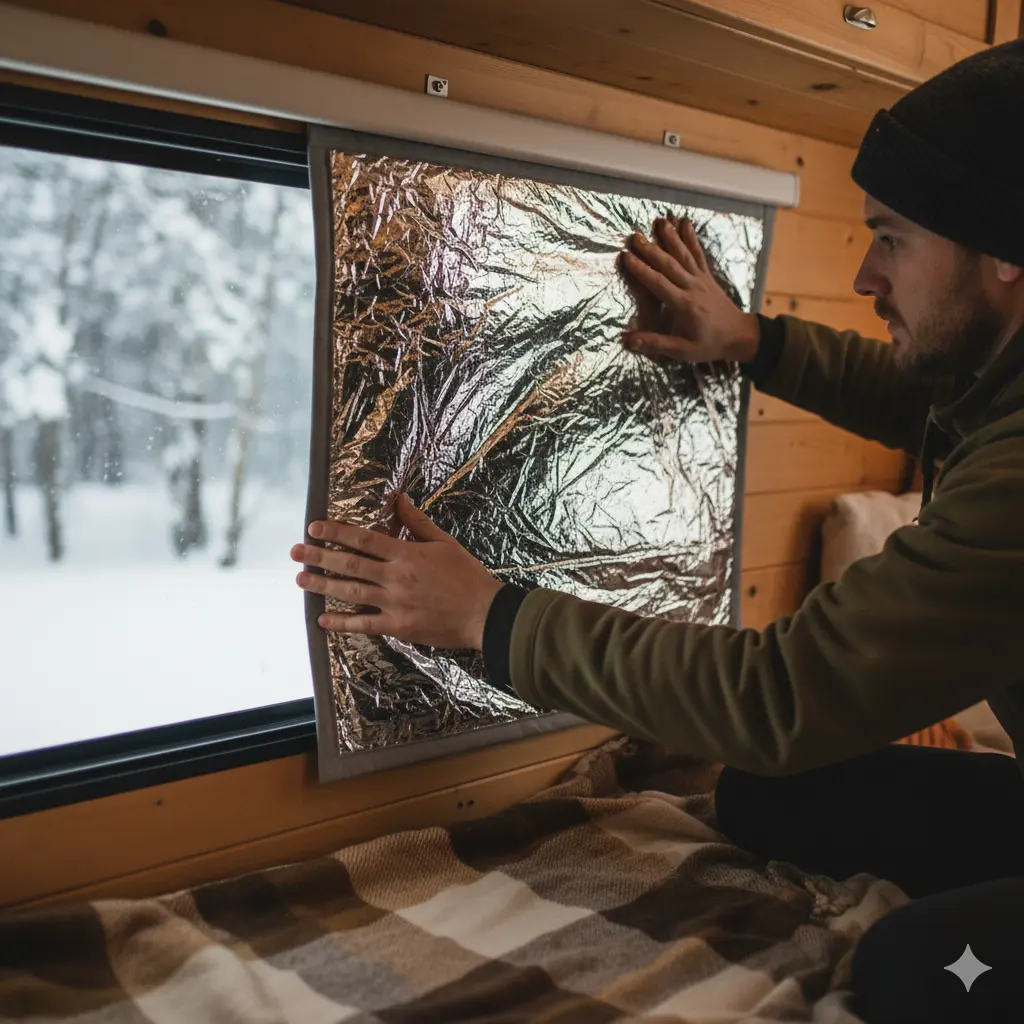 - Windows: Use thermal curtains, Reflectix, or foam board cutouts.