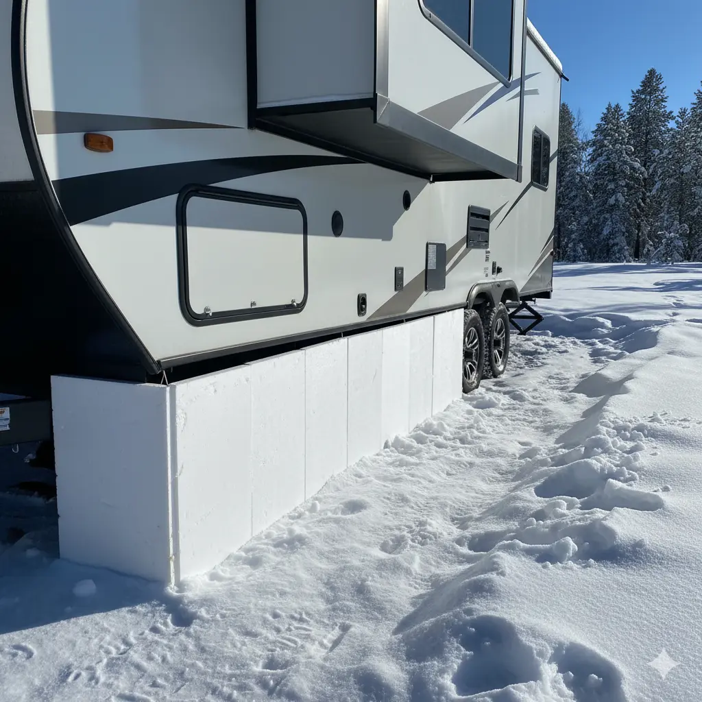 Wind chill steals more heat from your camper than you might realize. Installing RV skirting — or even makeshift barriers — helps trap warm air beneath your rig.